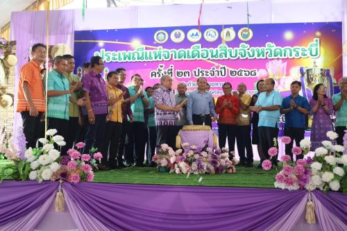 วันที่ 18 กันยายน 2568 นายชัยวุฒิ ครุฑมาศ พัฒนาการจังหวัดกระบี่ นำคณะ พช.กระบี่ ร่วมงาน ประเพณีแห่จาดเดือนสิบจังหวัดกระบี่ ชิงถ้วยพระราชทานสมเด็จพระกนิษฐาธิราชเจ้า กรมสมเด็จพระเทพรัตนราชสุดาฯ สยามบรมราชกุมารี ณ วัดแก้วโกรวาราม พระอารามหลวง ตำบลปากน้ำ อำเภอเมือง จังหวัดกระบี่ โดยมี นายสมศักดิ์ กิตติธรกุล นายกองค์การบริหารส่วนจังหวัดกระบี่ เป็นประธานเปิดงาน ท่ามกลางผู้บริหาร หน่วยงานรัฐ เอกชน และประชาชนจำนวนมาก