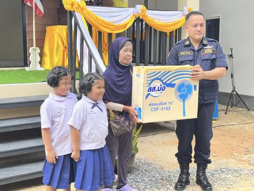 จากนั้นประธานได้มอบบ้านแก่ผู้รับมอบ พร้อมเยี่ยมชมบ้านและมอบเครื่องอุปโภคบริโภคเป็นขวัญกำลังใจให้ครอบครัวผู้ได้รับบ้านใหม่ อีกทั้งร่วมปลูกต้นไม้เป็นสัญลักษณ์แห่งการเริ่มต้นชีวิตใหม่ที่อบอุ่นและมั่นคง