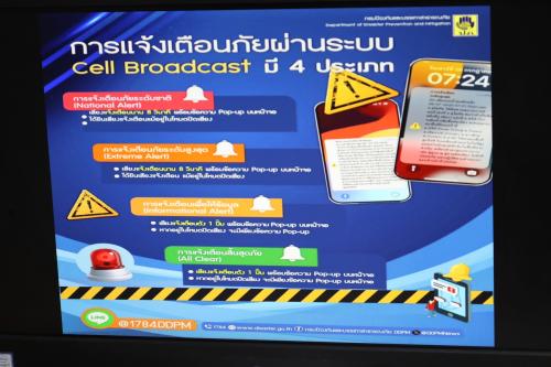 นายอรรษิษฐ์ สัมพันธรัตน์ ปลัดกระทรวงมหาดไทย เป็นประธานในพิธีเปิดการทดสอบและกดยืนยันการส่งข้อความทดสอบระดับประเทศ (Nationwide Test) ผ่าน Cell Broadcastไปยังพื้นที่ 76 จังหวัด และกรุงเทพมหานคร ในเวลา 14.00 น. ประชาชนในพื้นที่จังหวัดกระบี่ได้รับเสียงสัญญาณและข้อความแจ้งเตือนอัตโนมัติ ซึ่งจะปรากฏข้อความว่า “ทดสอบแจ้งเตือนภัย ไม่ใช่สถานการณ์จริง จากกรมป้องกันและบรรเทาสาธารณภัย (ปภ.) โปรดอย่าตื่นตระหนก” “This is a test message from Department of Disaster Prevention and Mitigation (DDPM), not real situation. No action required.”
