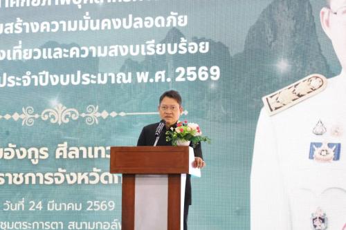 🗓️ วันที่ 24 มีนาคม 2569 เวลา 09:30 น. 🕘 นายอังกูร ศีลาเทวากูล ผู้ว่าราชการจังหวัดกระบี่ เป็นประธานในพิธีเปิดโครงการพัฒนาศักยภาพบุคลากรฝ่ายปกครอง เพื่อเสริมสร้างความมั่นคง ปลอดภัย ด้านการท่องเที่ยว และความสงบเรียบร้อยในพื้นที่ ประจำปีงบประมาณ พ.ศ. 2569 ณ หอประชุมตระการตา สนามกอล์ฟ ฮูลา ฮูล่า ตำบลกระบี่น้อย อำเภอเมืองกระบี่ จังหวัดกระบี่ 📍 โดยมี นายพงษ์ธร จันทร์สวัสดิ์ ปลัดจังหวัดกระบี่ เป็นผู้กล่าวรายงานถึงวัตถุประสงค์ในการยกระดับมาตรฐานการรับแจ้งเหตุ การรายงาน และการประสานงานแบบบูรณาการของผู้นำท้องที่ 🤝